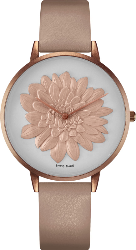 Кварцевый механизм ETA, корпус с IP покрытием, диаметр 39 мм, минеральное стекло, цветочный циферблат, ремешок из эко-кожи, WR 30 м