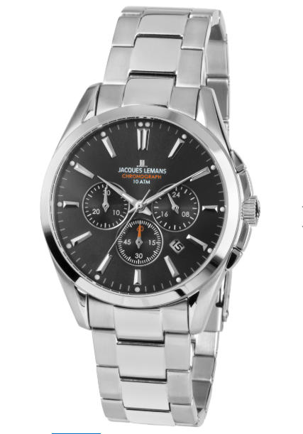 Кварцевый хронограф. Водостойкость WR 100. Часы, минуты, секунды, дата, секундомер, хронограф, 12/24х часовой формат времени. Люминесцентные стрелки. Корпус выполнен из нержавеющей стали. Диаметр корпуса 42 мм. Минеральное стекло. Заводная головка с защитой. Браслет выполнен из нержавеющей стали.